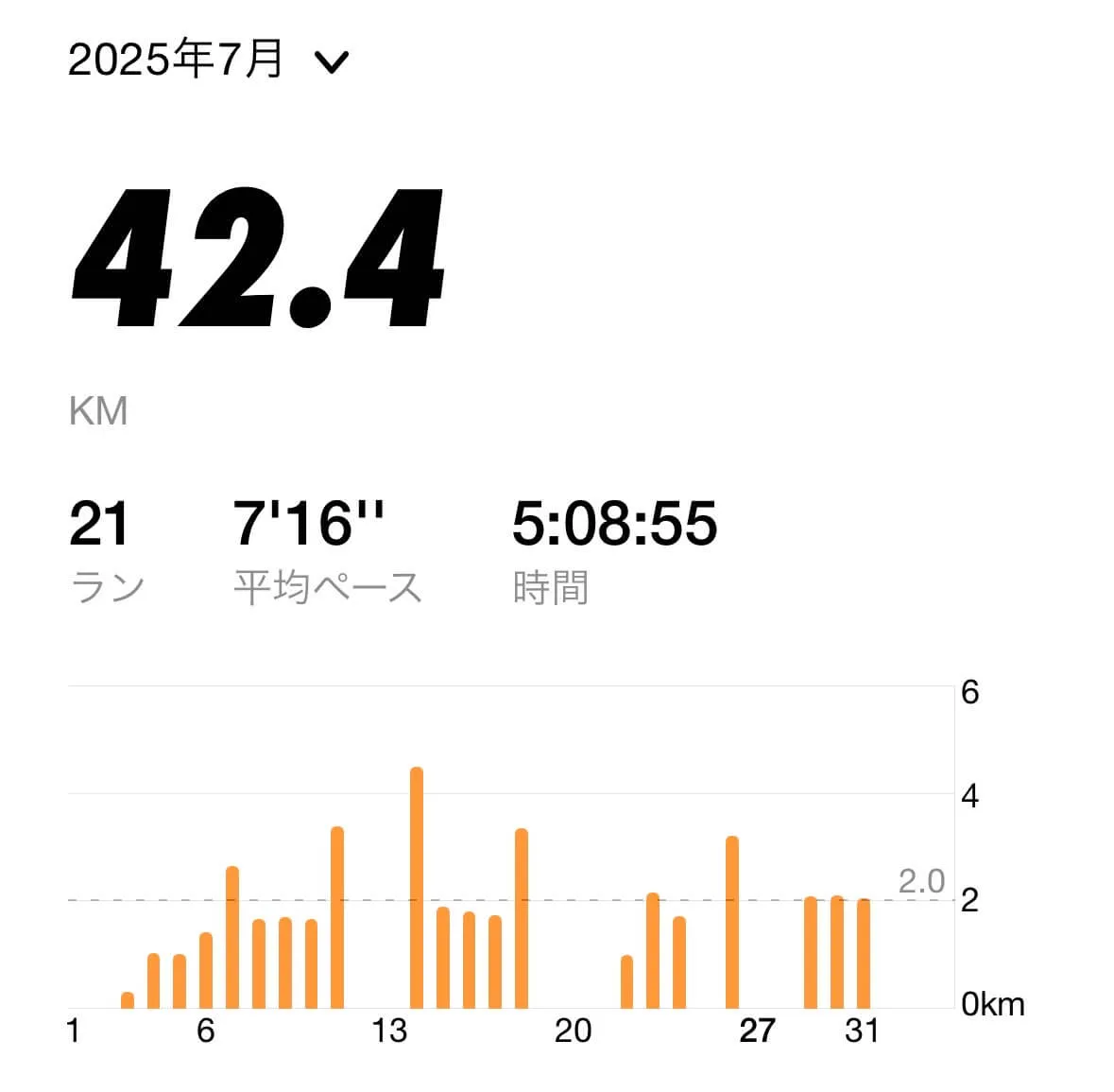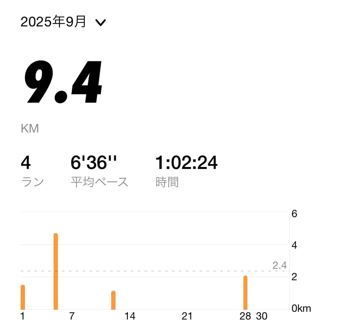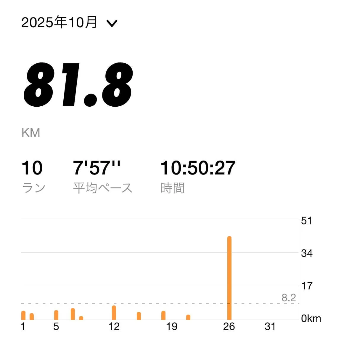 この調子で走行距離を伸ばしていけば良かったのですが、8月に入ってから練習する時間が取りにくくなり、ランニングの頻度が激減してしまいました。