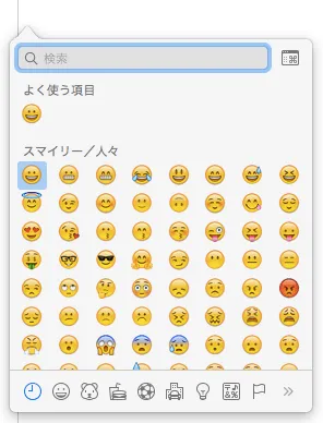 command + ctrl + space で出せるのを最近知って喜んでる 😄 便利 👏✨ 参考:僕がよく使う Slack の便利機能 - Qiita 1pxのズレが許せないタイプ 思ったことをそのままブログに書くことの難しさ
