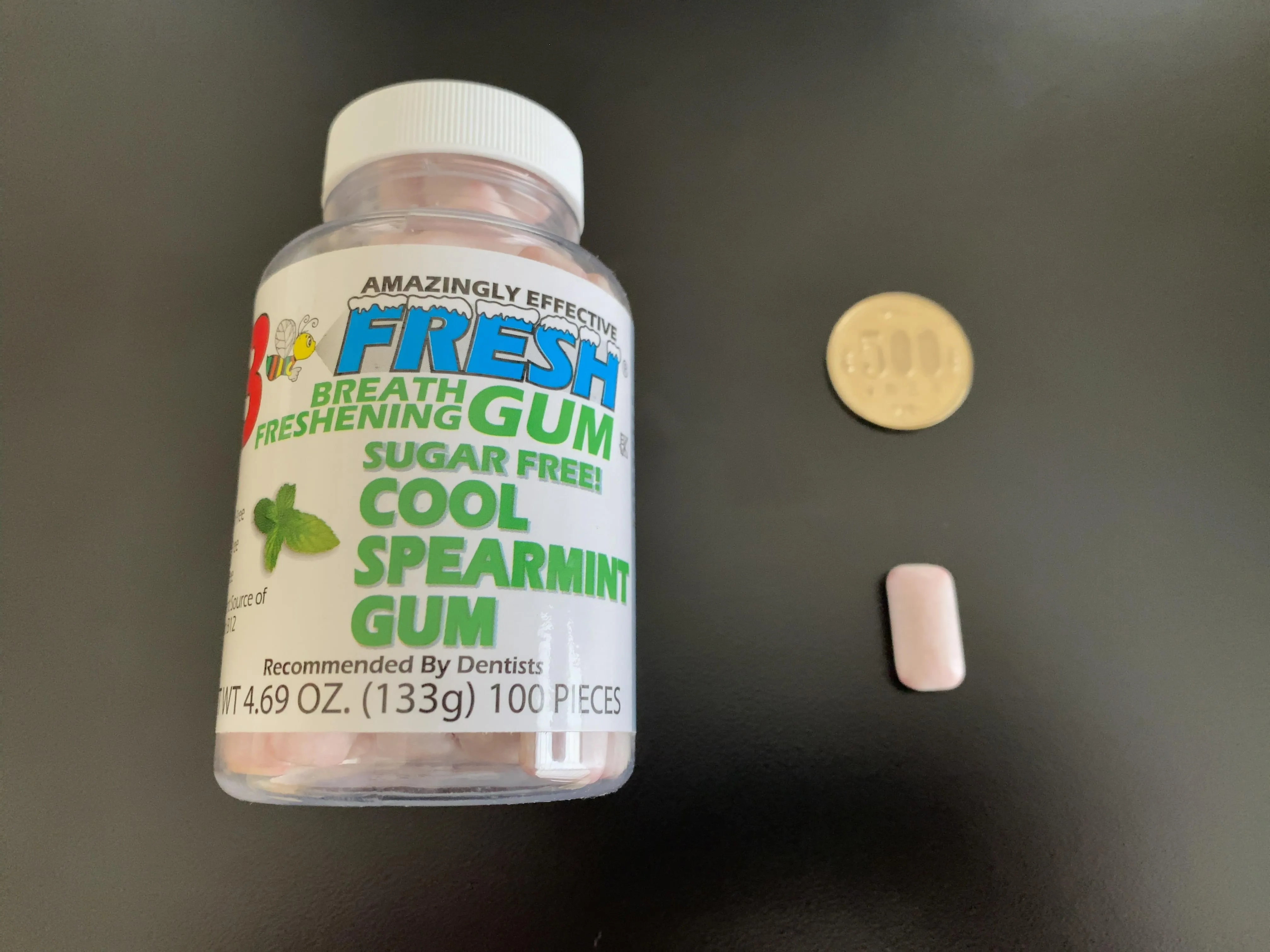 初めて噛む前はほとんど同じだろう…と思っていましたが、個人的にはこちらの方が味がなくなるのが早く感じました。ミント味のガムを求めるなら、ペパーミントにしておいたほうが良いかもしれません。