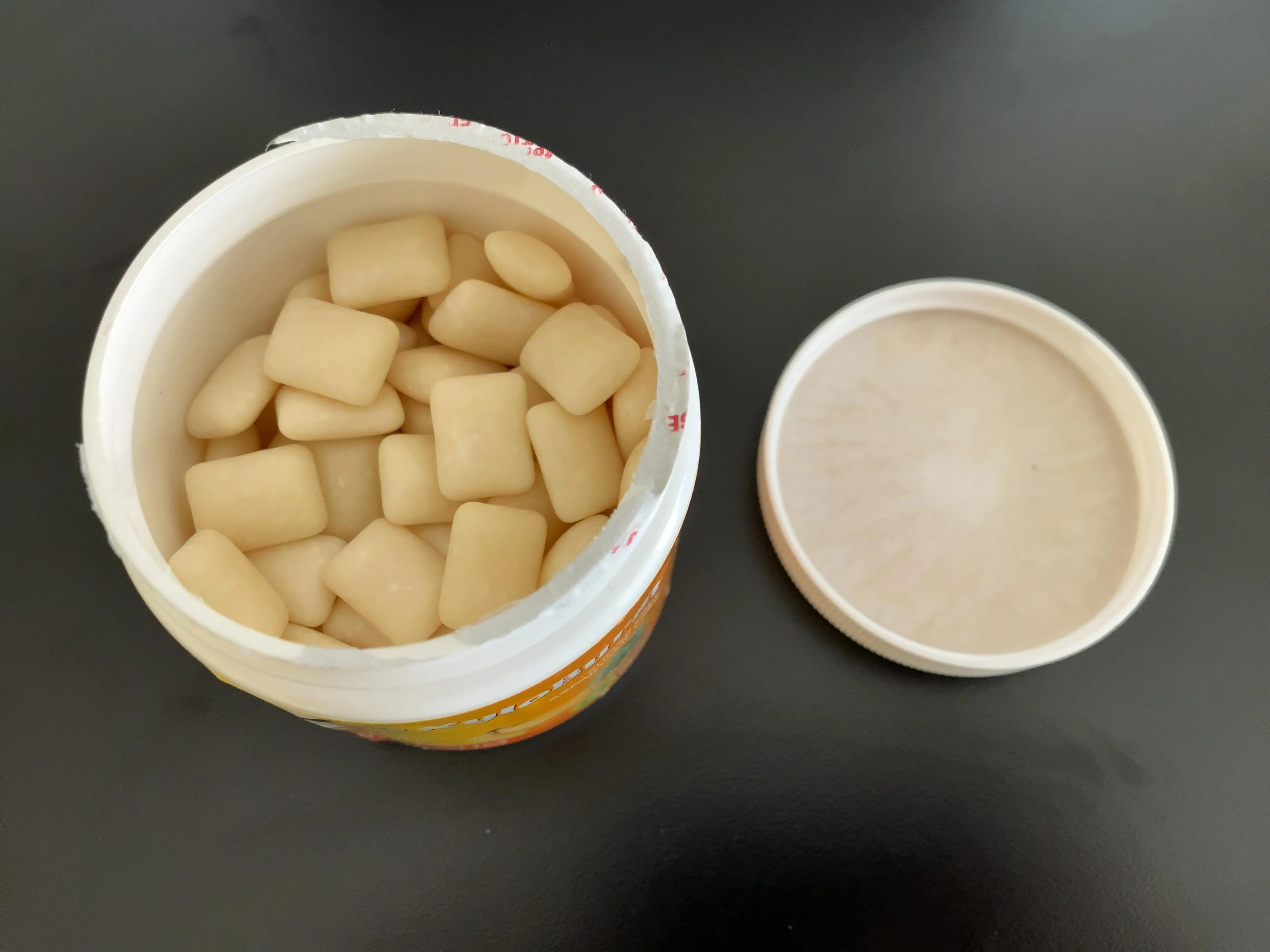 味は普通のマスカット味のガムという感じですが、やはり味がなくなるのは一般的なガムと比べ少し早い気がします。とはいえ、ガムの粒自体の品質は高く、やはり日本製だな、と思いました。